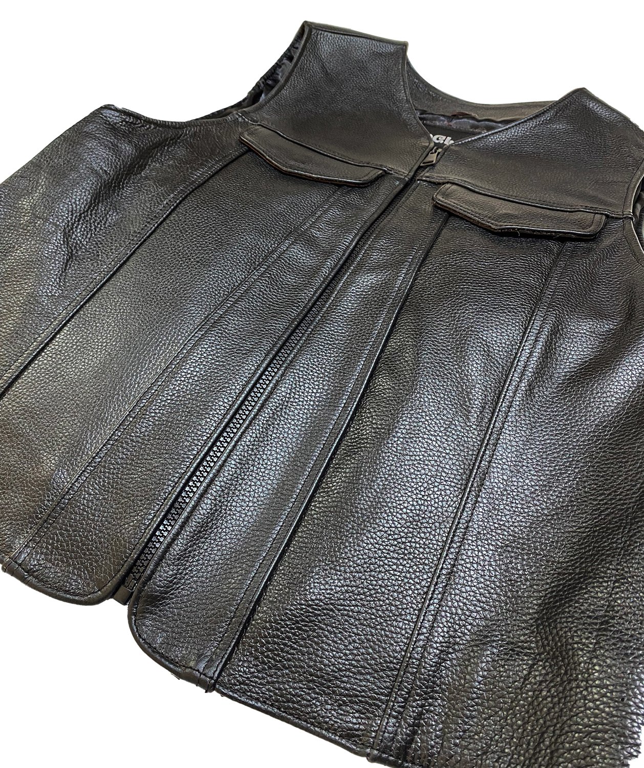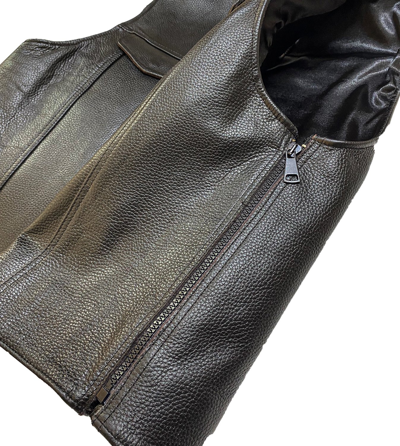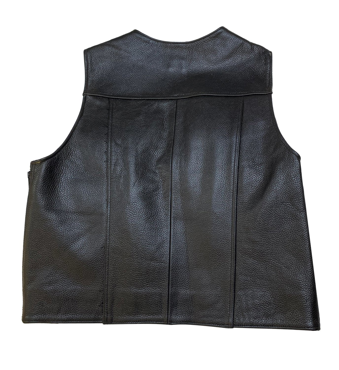 Erkek Siyah Deri Motorcu Yeleği | Fermuarlı ve Cepli