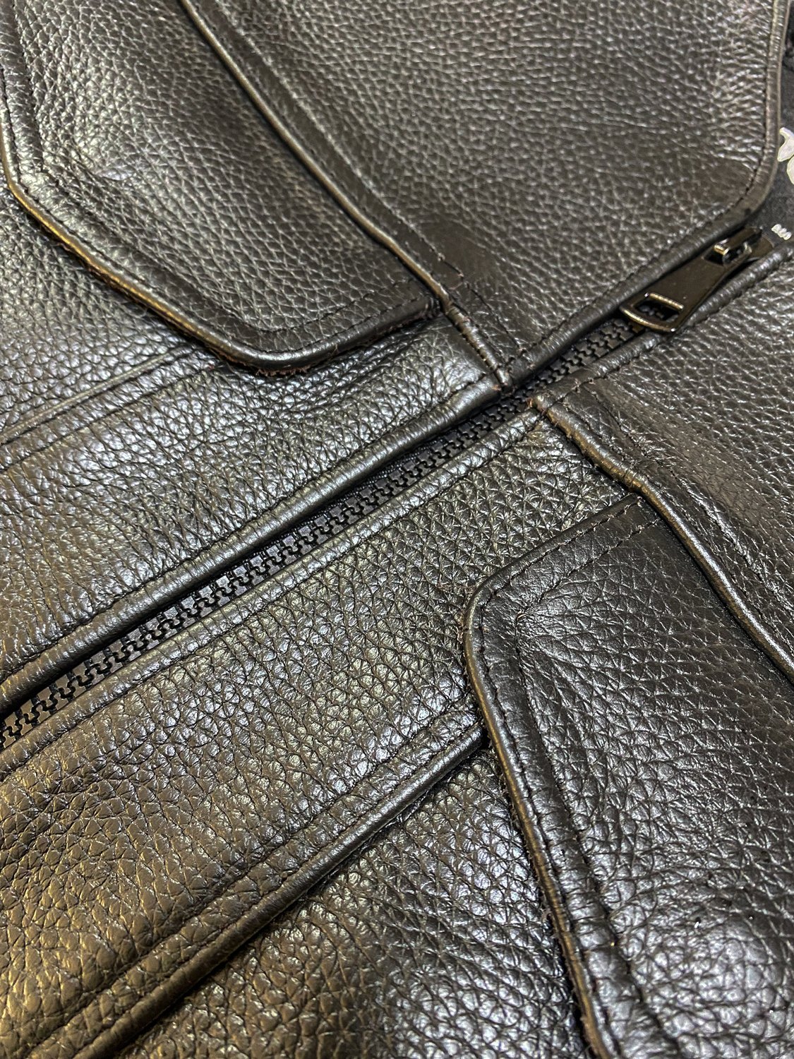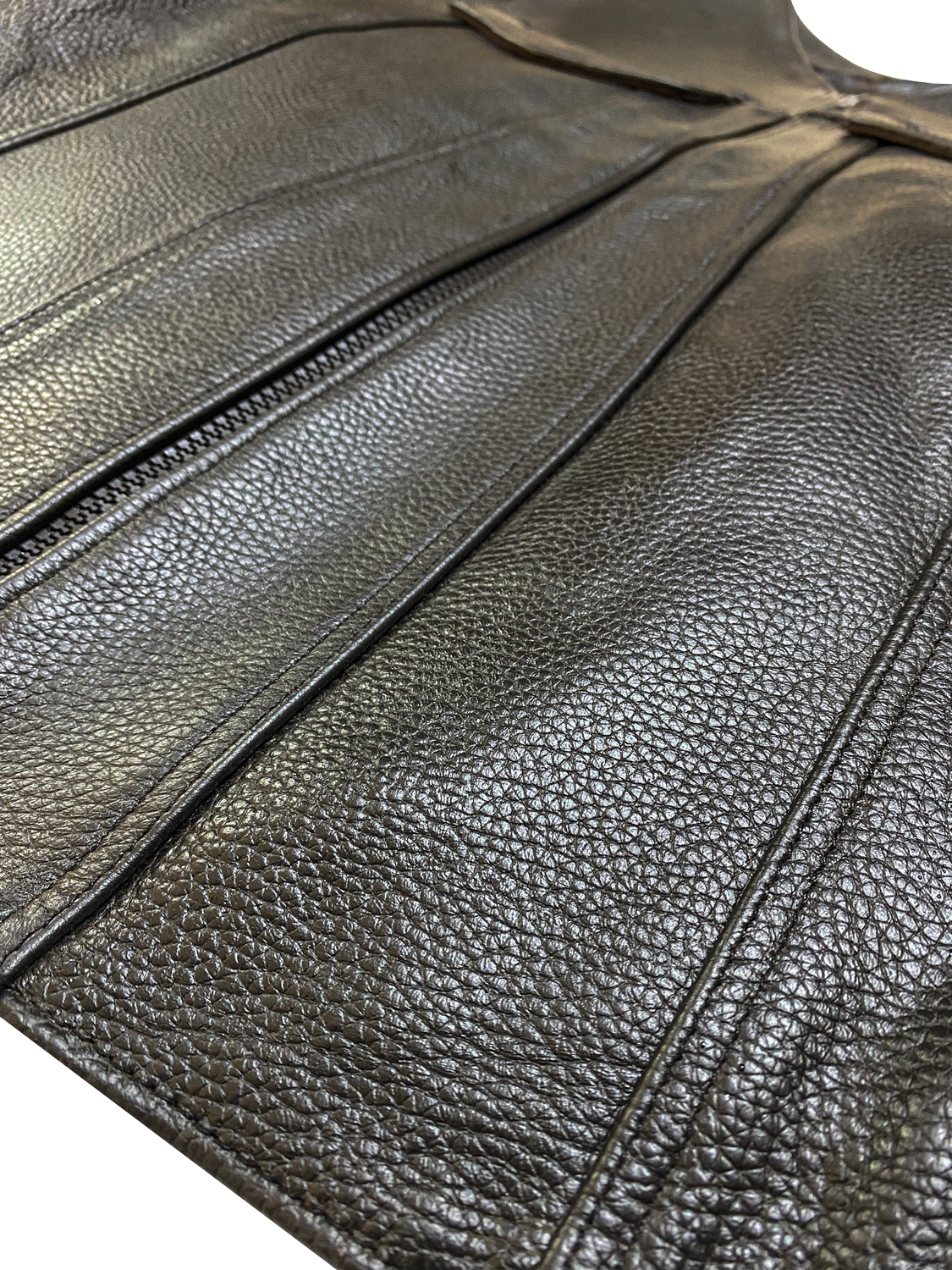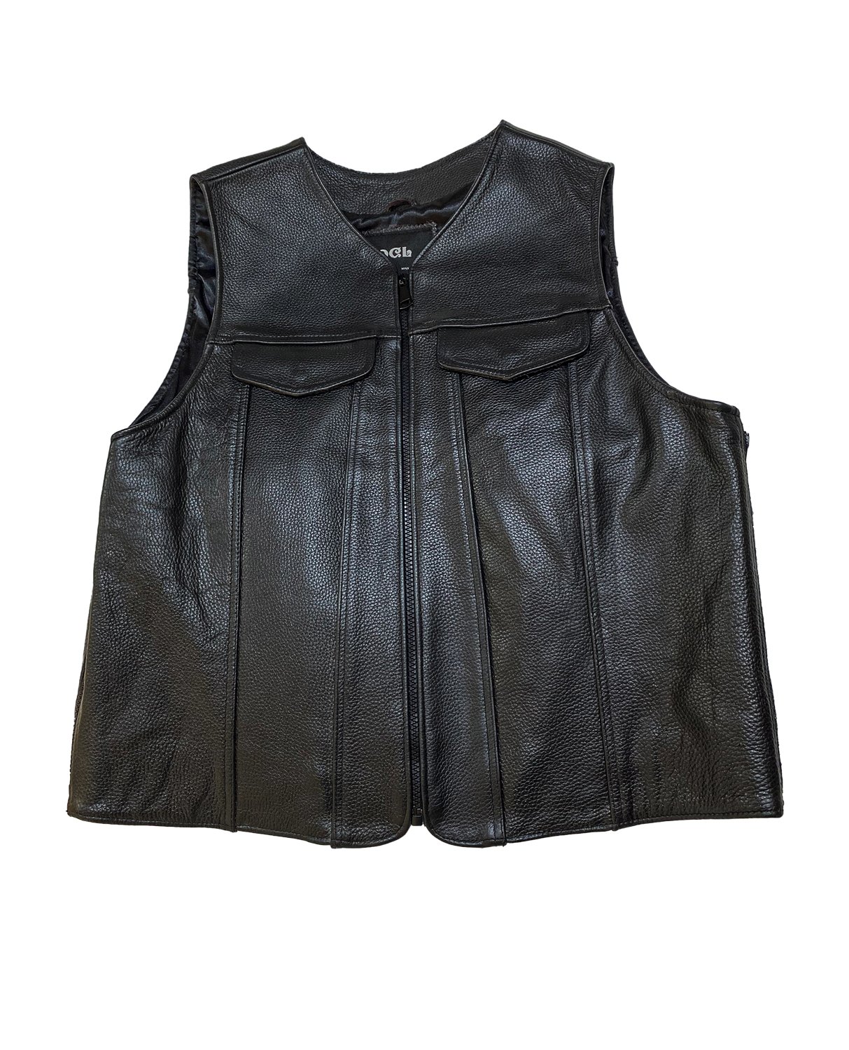 Erkek Siyah Deri Motorcu Yeleği | Fermuarlı ve Cepli